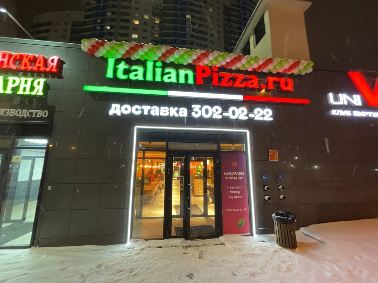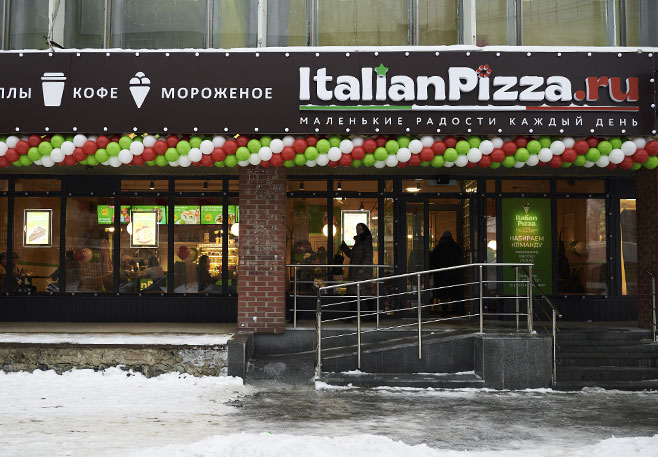 Пиццерия Italian Pizza на проспекте Космонавтов, 7б расположена не далеко от гипермаркета "Лента".