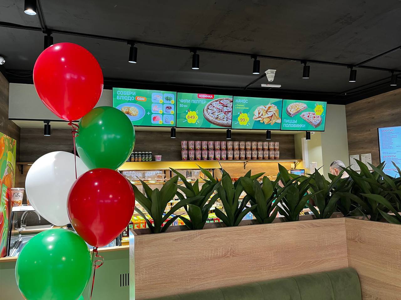 В нашем меню есть широкий выбор блюд на любой вкус: горячая пицца, роллы, супы, воки, нежные десерты, бизнес-ланчи, свежесваренный кофе и многое другое. Для детей в зале оборудована игровая зона с игрушками, раскрасками и материалами для рисования.