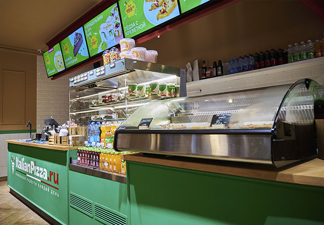 Светлая, просторная пиццерия всегда вас встретит ароматом горячей пиццы и свежесваренного кофе. Также в нашем меню представлен широкий выбор блюд азиатской кухни: роллы, воки, онигири. Дети смогут весело провести время в детской комнате, насладиться вкусом картофеля фри или сырных палочек.
