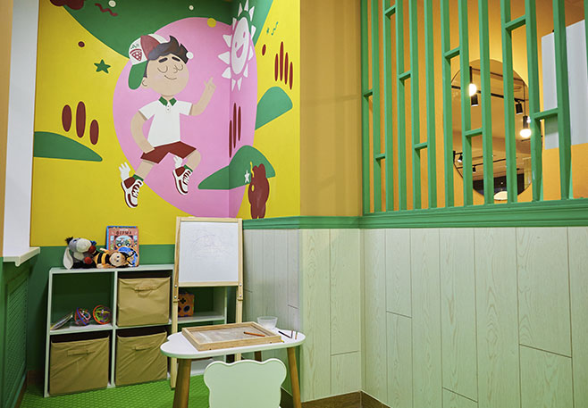 Зал в традиционном итальянском стиле с живыми растениями создает неповторимую атмосферу тепла и уюта. Вкуснейший кофе, безлимитный лимонад, свежие аппетитные блюда — все для вашего удовольствия. Для самых маленьких гостей у нас оборудована детская игровая зона.